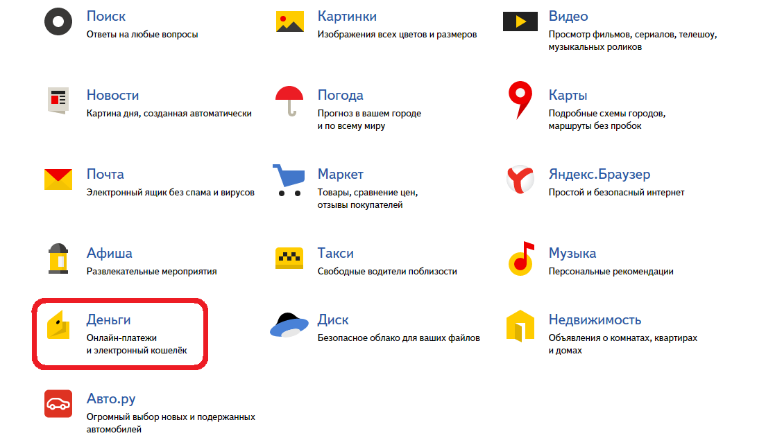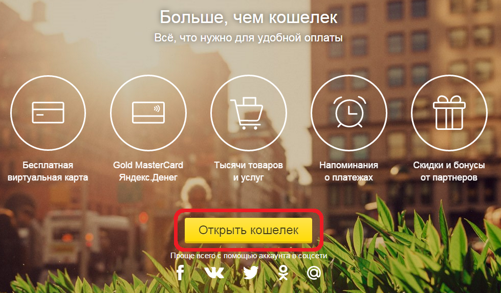 Мы попадаем на страницу сервиса Деньги. Нажимаем Открыть кошелек: