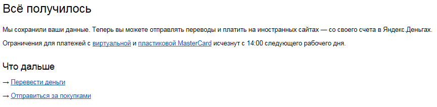 Поздравляю теперь у Вас уже есть собственный электронный кошелек Яндекс. Деньги, регистрация в Яндекс.Деньги успешно завершена: