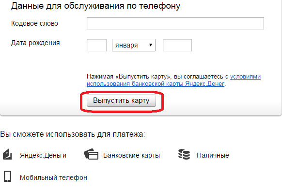 Оплатите стоимость банковской карты Яндекс.Деньги любым удобным для Вас способом и через 2 недели получите ее письмом по почте.