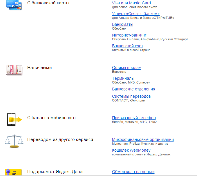 Откроется страница со всеми доступными способами пополнения кошелька, Вам останется только выбрать наиболее подходящий и четко следовать инструкции: