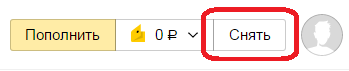 Для того, чтобы осуществить вывод денег с Яндекс кошелька зайдите в тоже меню в верхнем правом углу сервиса, только на этот раз нажмите Снять: