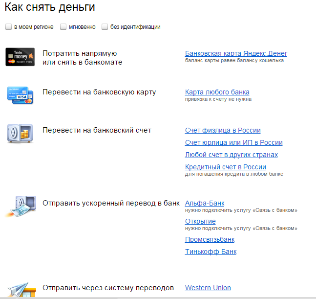 Услуга Связь с банком. Этот раздел может стать полезным тем, у кого имеется счет в Альфа-Клике или есть пластиковая карта банка «ОТКРЫТИЕ», тогда Вы получите возможность пополнять свой счет в Яндекс.Деньги без взимания комиссии.