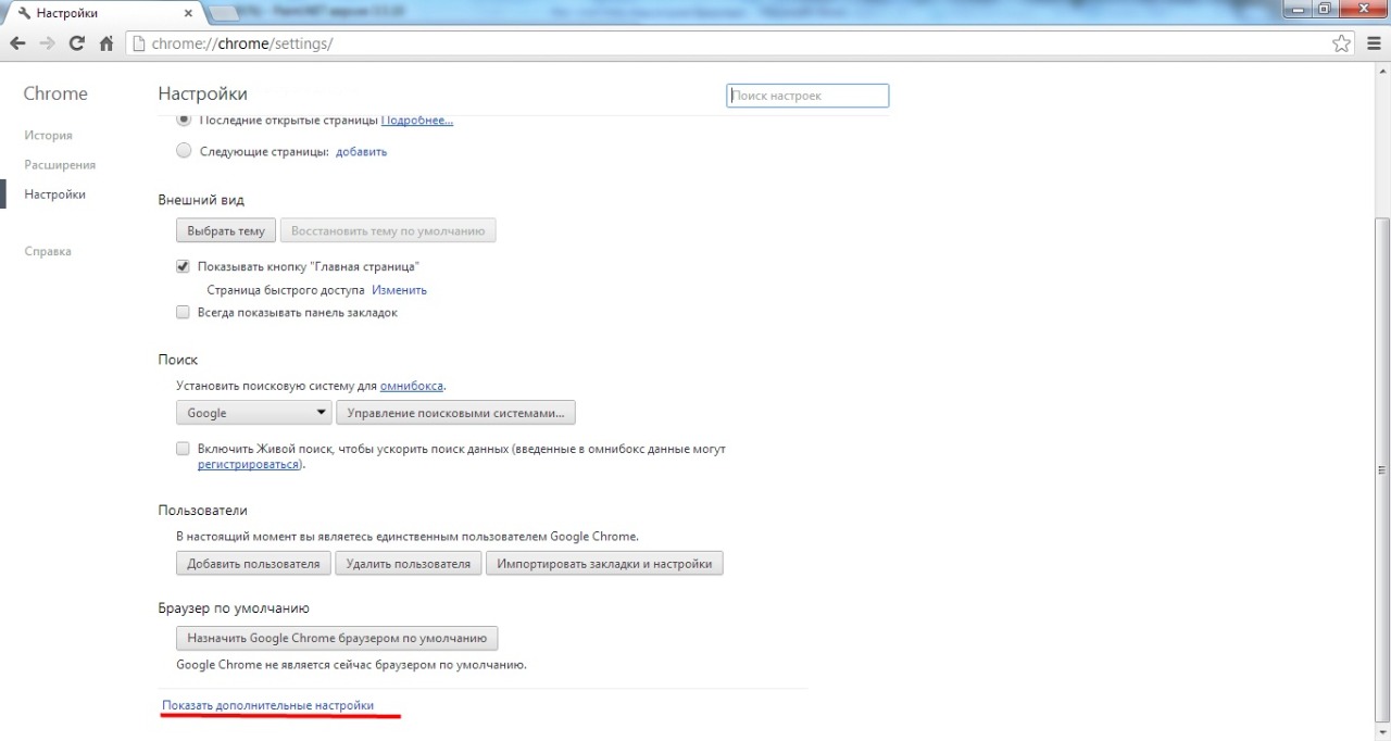 В настройках в самом низу находим «Показать дополнительные настройки» и нажимаем.