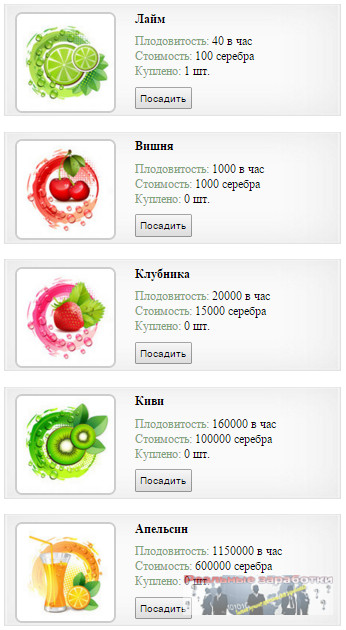 Зарабатывать в Bestferma (Бестферма) совсем несложно, нужно лишь покупать саженцы различных плодовых деревьев а затем собирать с них плоды. В игру можно начать играть без вложений, так как в игре отличные ежедневные бонусы от 1 до 500 серебра.