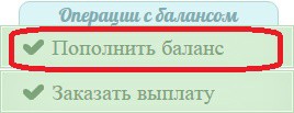 Но конечно же на бонусы особо не разгуляешься, много заработать не получится, поэтому лучше сразу пополнить баланс. Сделать это можно в соответствующем разделе меню: